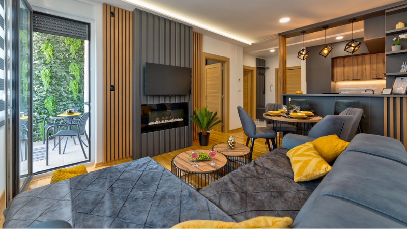 U dnevnom boravku se nalazi kamin i smart tv, a cela jedinica je pokrivena wi-fi signalom.