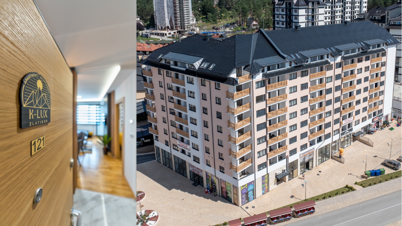 K-lux apartman nalazi se u novoizgrađenoj zgradi, udaljen samo 50m od dečijeg sankališta, 50m od pijace, 100m od početne stanice Gold Gondole, 5 minuta hoda do jezera.