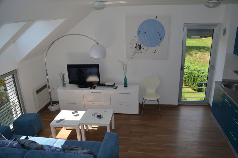 Gostima su na raspolaganju pet modernih, kompletno opremljenih apartmana. Apartmani se sastoje iz dnevne sobe sa kuhinjom, spavaće sobe, kupatila i terase. Dva apartmana su duplex, sa po dve spavaće sobe.